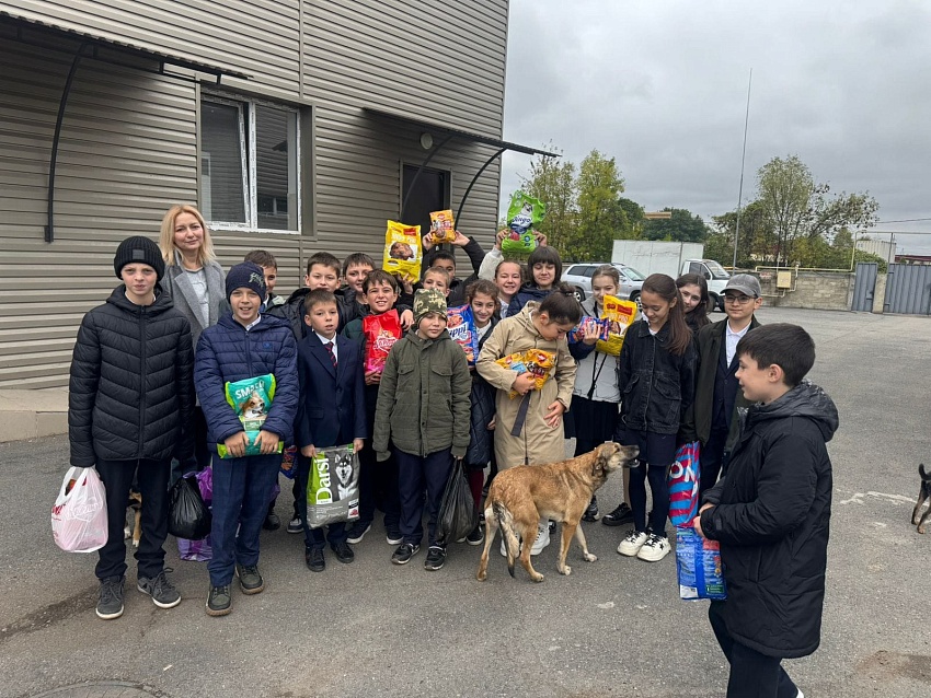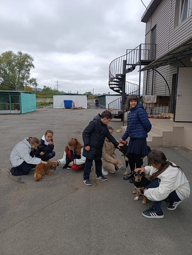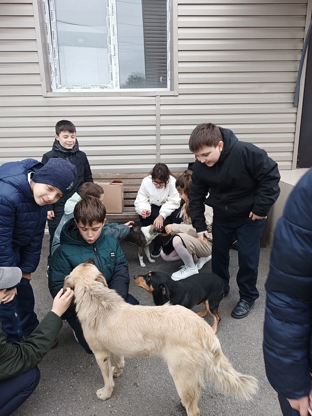 В преддверии Дня защиты животных по инициативе советника директора по воспитанию Газзаевой И.Г. учащиеся 5 "В" класса с классным руководителем Бараковой Еленой Михайловной посетили городской Владпитомник. Набрав хороший запас корма для собак, ребята с удовольствием отправились к четвероногим друзьям.