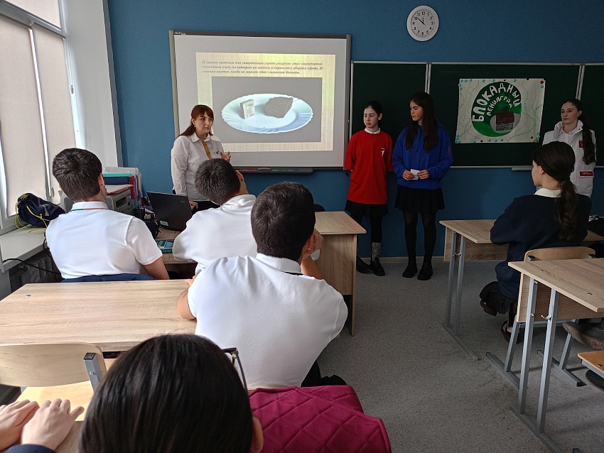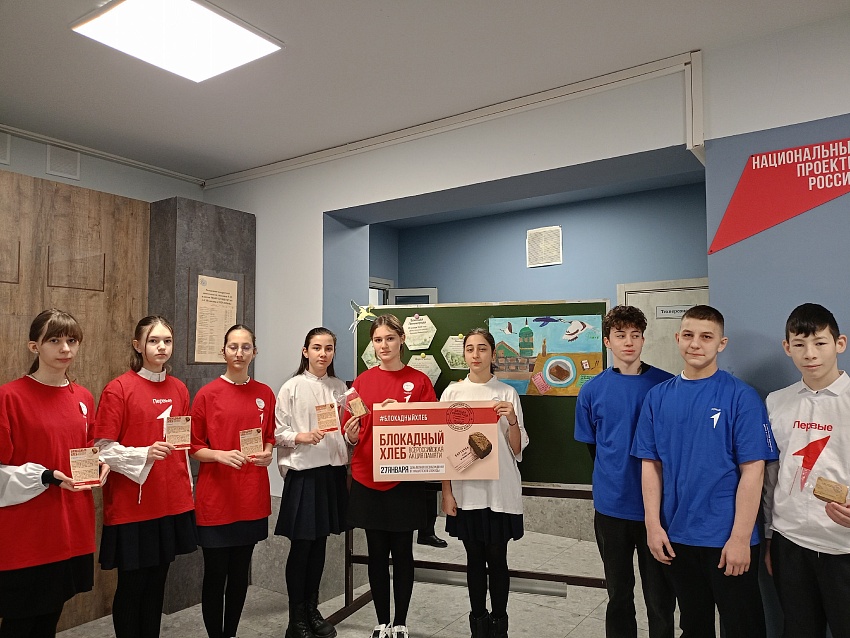 В рамках этой памятной даты участники Движения Первых, миротворцы 8а класса, под руководством советника директора по воспитанию Газзаевой И.Г. и классного руководителя Кубаловой И.А. провели трогательную акцию «Блокадный хлеб».