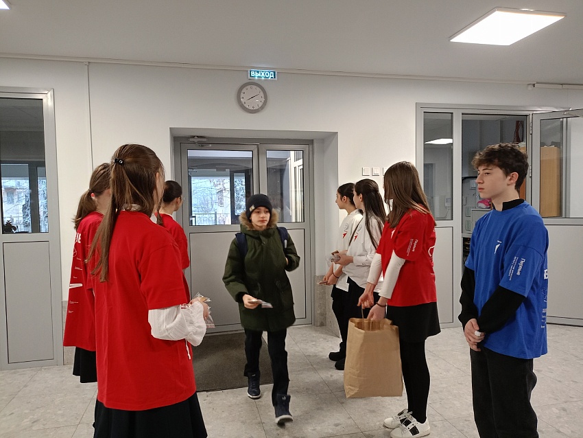 В рамках этой акции школьники и учителя получили символический кусочек хлеба и карточки с информацией о различных фактах того времени.